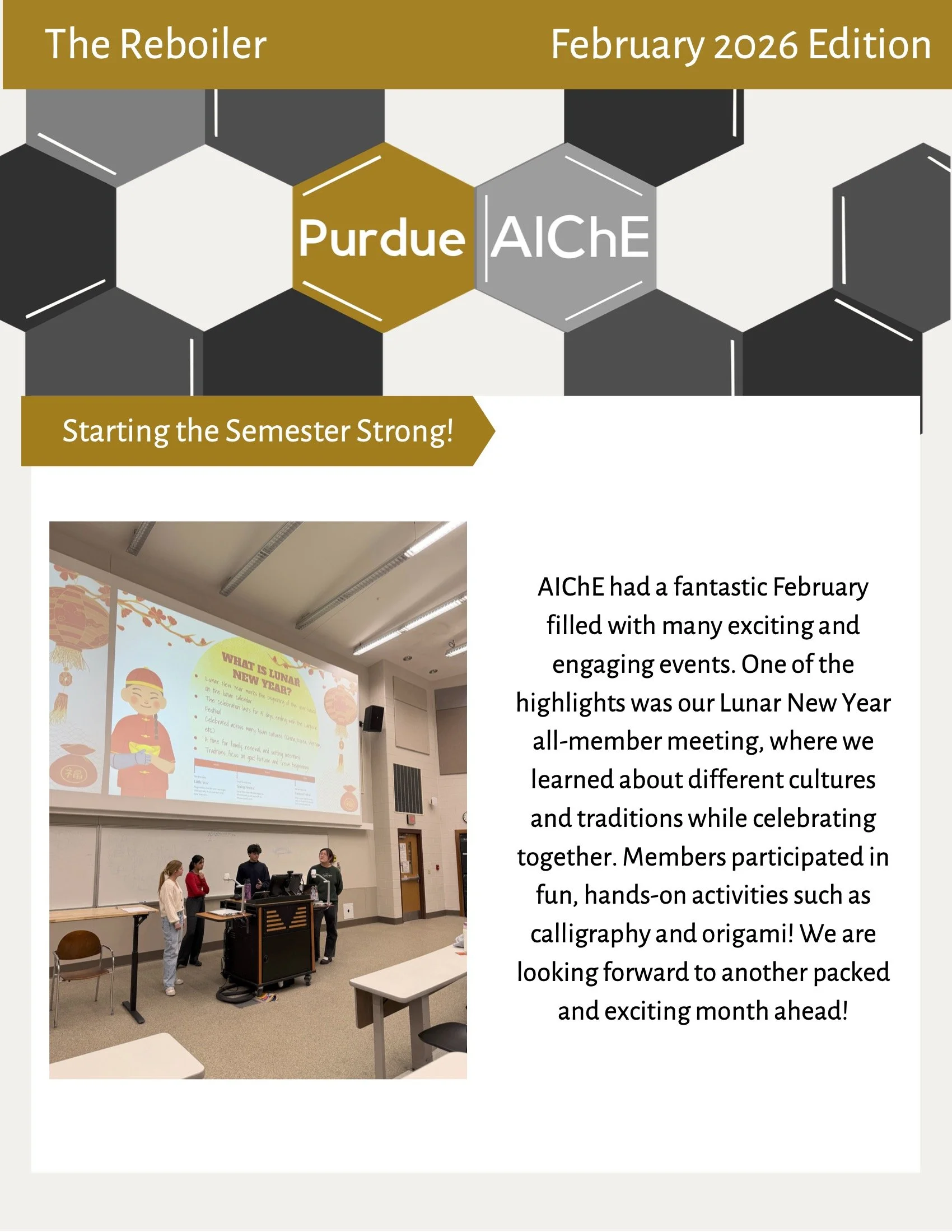 Monthly Newsletter What has Purdue AIChE been up to? Catch up by reading our Monthly Newsletter, The Reboiler. February 2026 January 2026 November 2025 October 2025